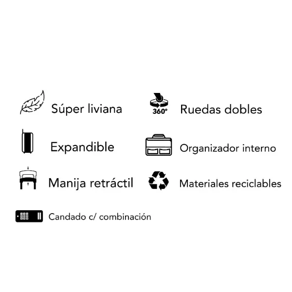 DESCRIPCIÓN DEL PRODUCTO: Descubre la Maleta de Viaje Wilson 24", el compañero ideal para tus aventuras. Diseñada para ofrecerte comodidad y estilo, esta maleta es perfecta para cualquier viaje, ya sea corto o largo. Características destacadas: Tamaño ideal: 66 cm de alto, 47 cm de ancho y 24 cm de profundidad, perfecta para llevar todo lo que necesitas. Ruedas dobles: Equipadas con 4 ruedas rotativas 360°, que garantizan una movilidad suave y fácil en cualquier superficie. Forro de calidad: Con un forro 210T impreso, que no solo añade un toque de elegancia, sino que también protege tus pertenencias. Diseño práctico: No es expandible, lo que la hace compacta y fácil de manejar. Manija lateral: Incluye una manija lateral que facilita su transporte y manejo en espacios reducidos. Haz de cada viaje una experiencia inolvidable con la Maleta de Viaje Wilson Córdoba 24", donde la funcionalidad se encuentra con el diseño moderno. ¡Prepárate para explorar el mundo con estilo!